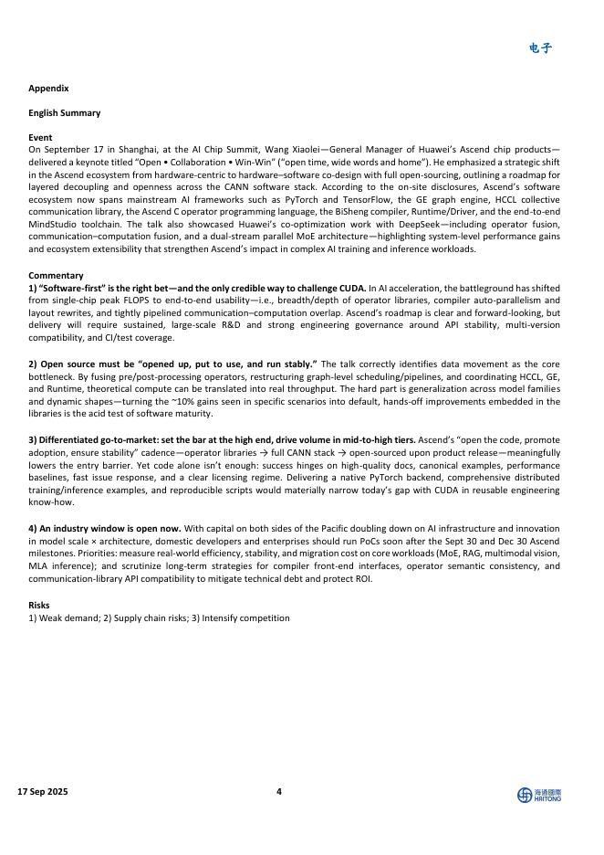 海通国际:电子行业AI芯片峰会速递(1):昇腾全面开源与软硬协同战略亮相,生态加速与产业机遇显著提升.pdf