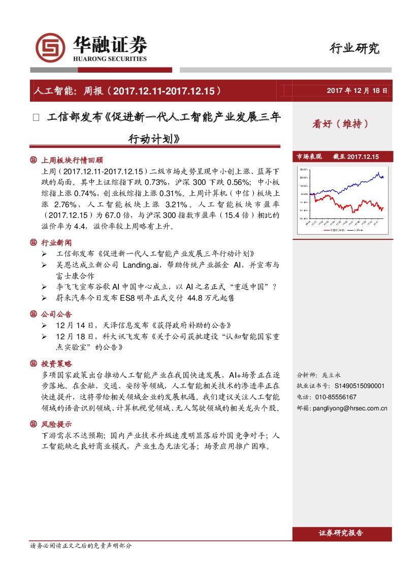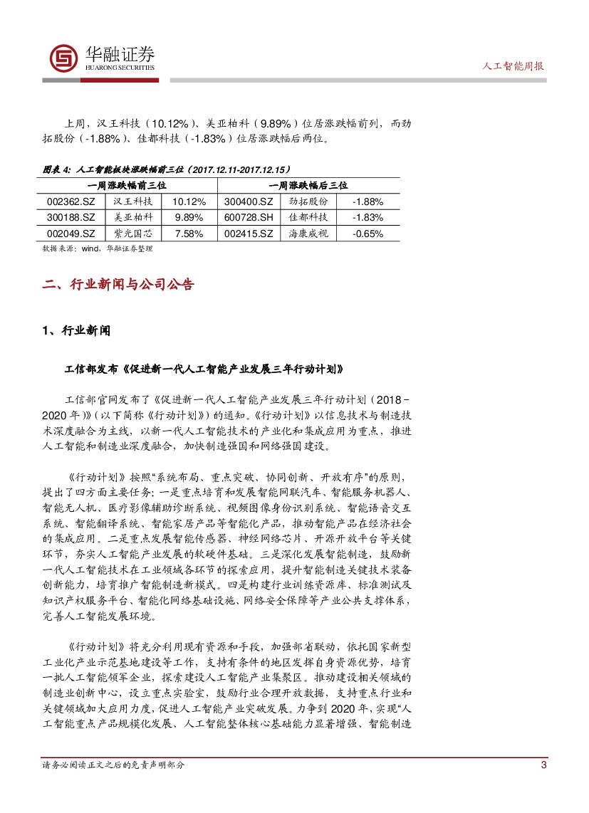 华融证券:人工智能周报:工信部发布《促进新一代人工智能产业发展三年行动计划》.pdf