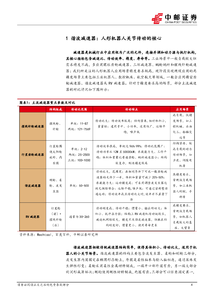中邮证券:机械设备深度报告:谐波减速器—机器人轻负载关节的核心传动部件.pdf