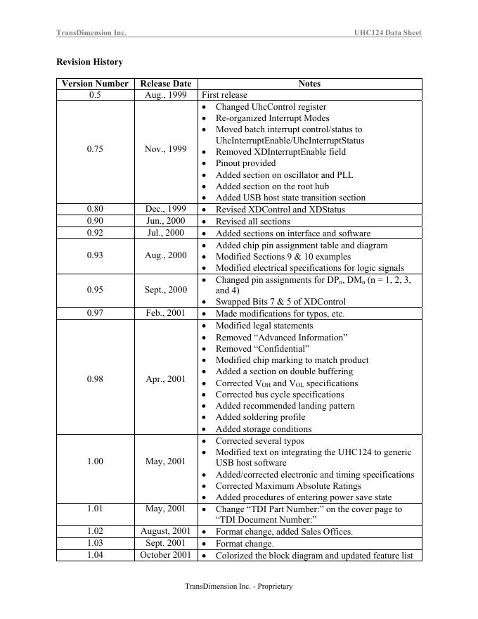 TRANSDIMENSION UHC124 USB Host Controller 数据手册.pdf