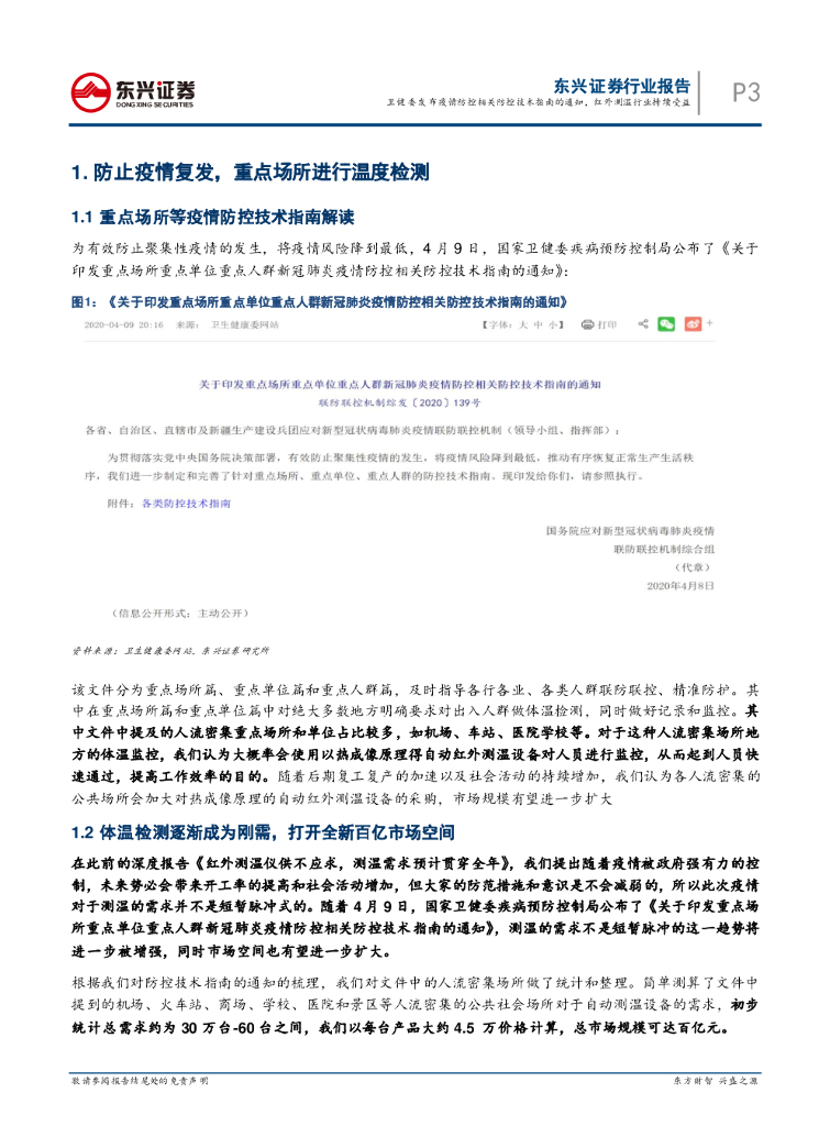 东兴证券:电子元器件:卫健委发布疫情防控相关防控技术指南的通知,红外测温行业持续受益.pdf