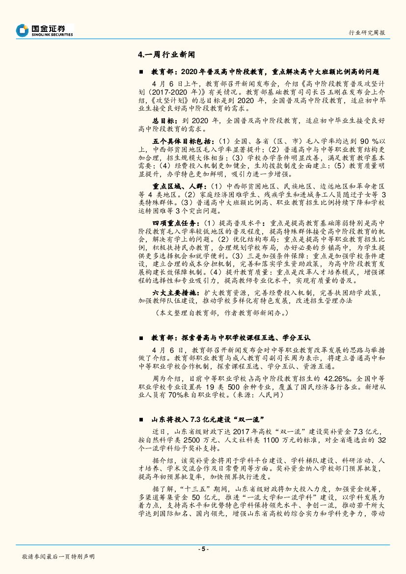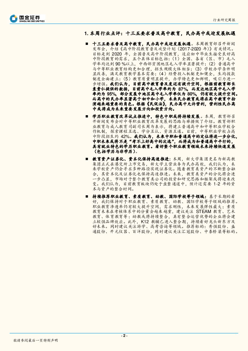 国金证券:教育行业周报第九期:十三五要求普及高中教育,民办高中或迎发展机遇.pdf