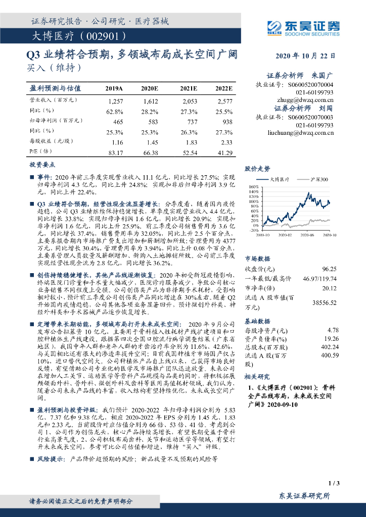 东吴证券:大博医疗(002901)-Q3业绩符合预期,多领域布局成长空间广阔.pdf