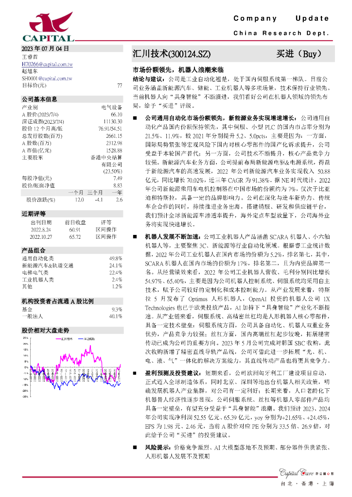 群益证券:汇川技术(300124)-市场份额领先,机器人浪潮来临.pdf