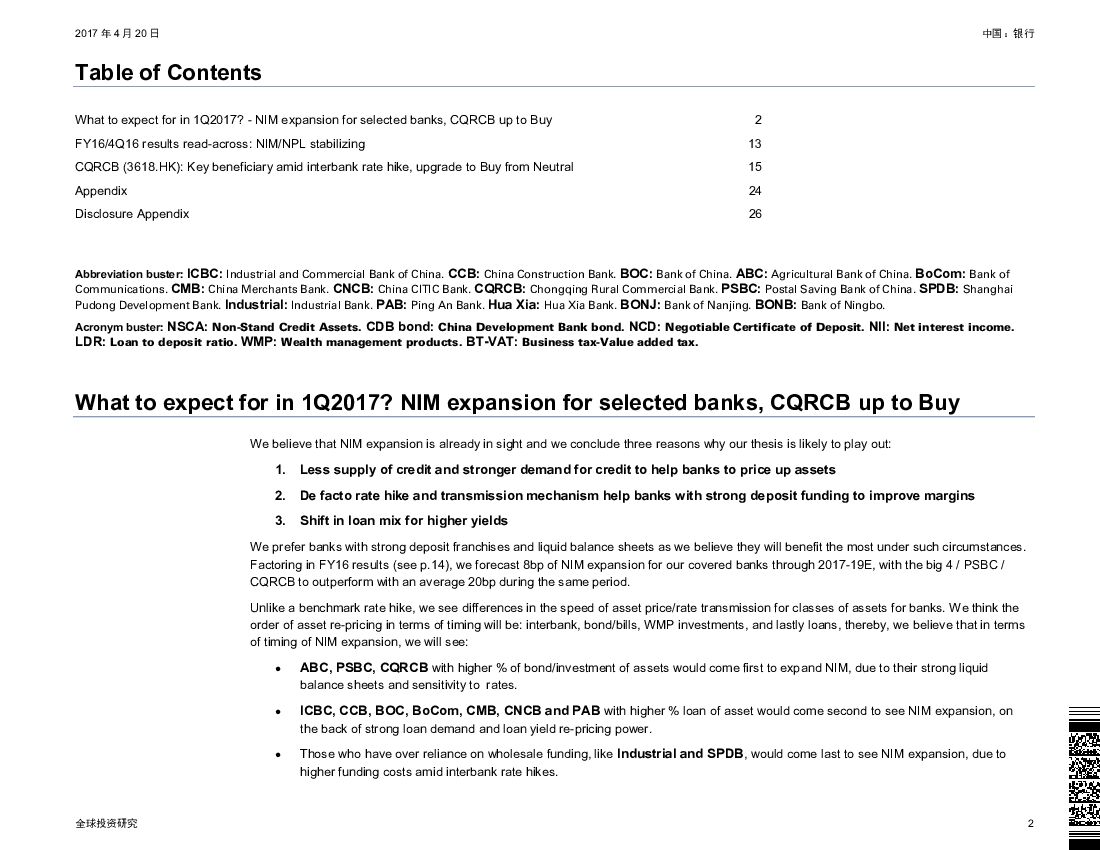 高华证券:中国:银行:2017年一季度前瞻:净息差如期扩张;资产负债表结构是关键;上调重庆农商行评级至买入(摘要).pdf
