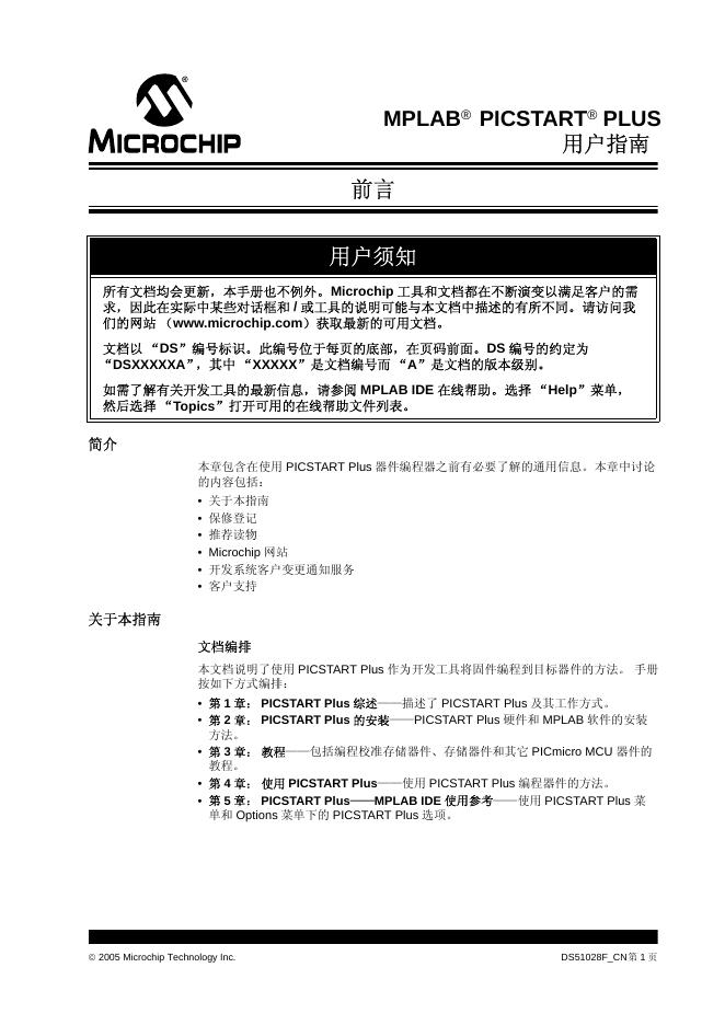 MICROCHIP MPLAB IDE PICSTART PLUS用户指南.pdf