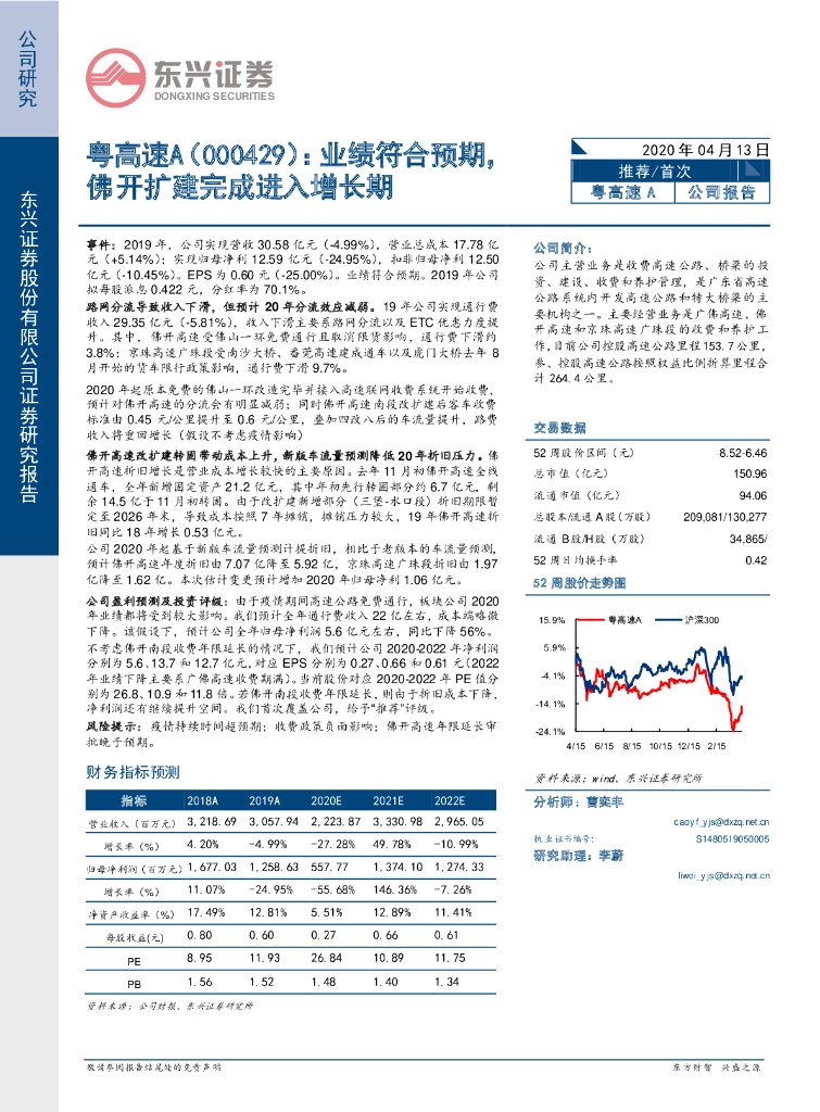 东兴证券:粤高速A(000429)-业绩符合预期,佛开扩建完成进入增长期.pdf
