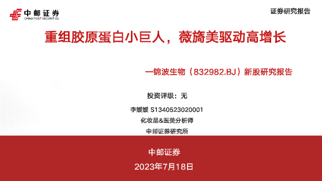 中邮证券:锦波生物(832982)-新股研究报告:重组胶原蛋白小巨人,薇旖美驱动高增长.pdf