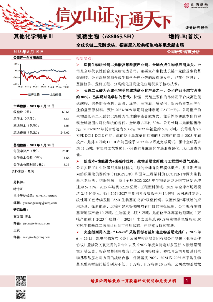 山西证券:凯赛生物(688065)-全球长链二元酸龙头,招商局入股共拓生物基尼龙新市场.pdf