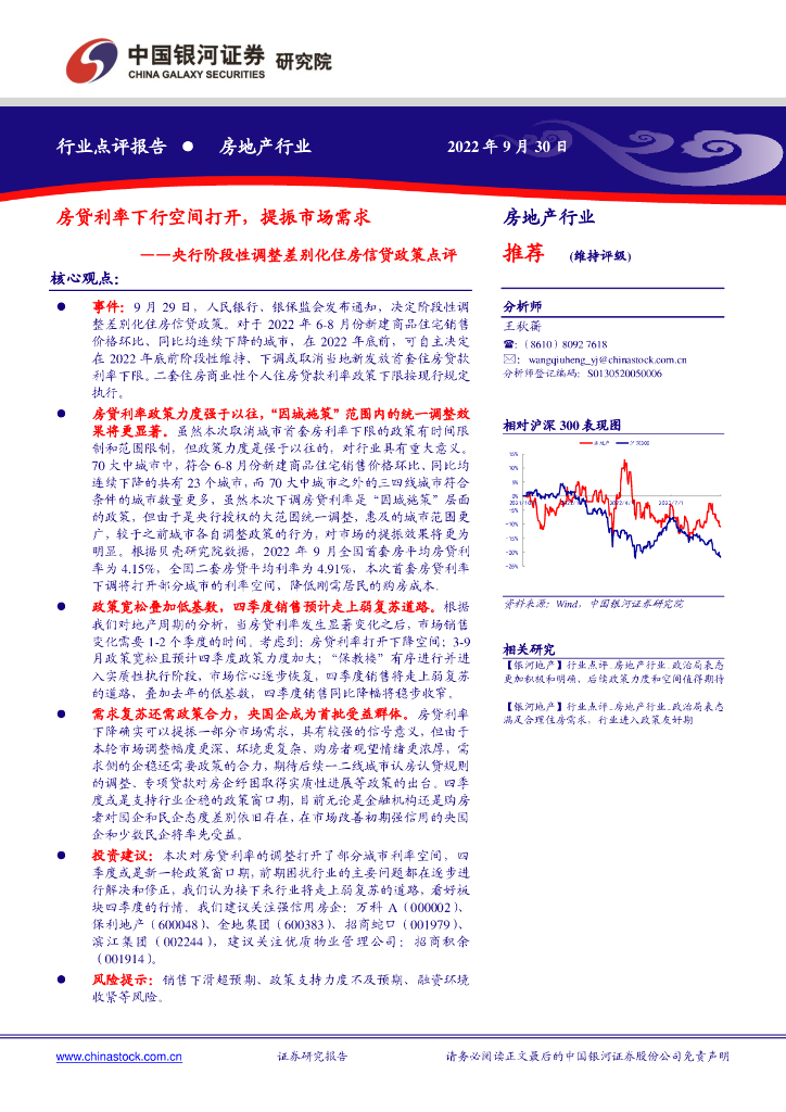 中国银河:央行阶段性调整差别化住房信贷政策点评:房贷利率下行空间打开,提振市场需求.pdf