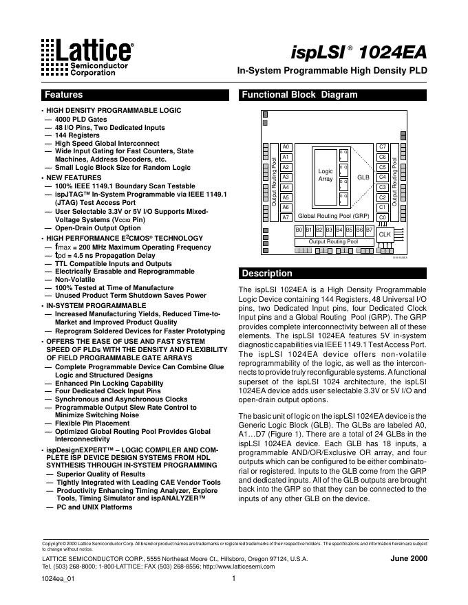 lattice ispLSI 1024EA In-System Programmable High Density PLD 数据手册.pdf