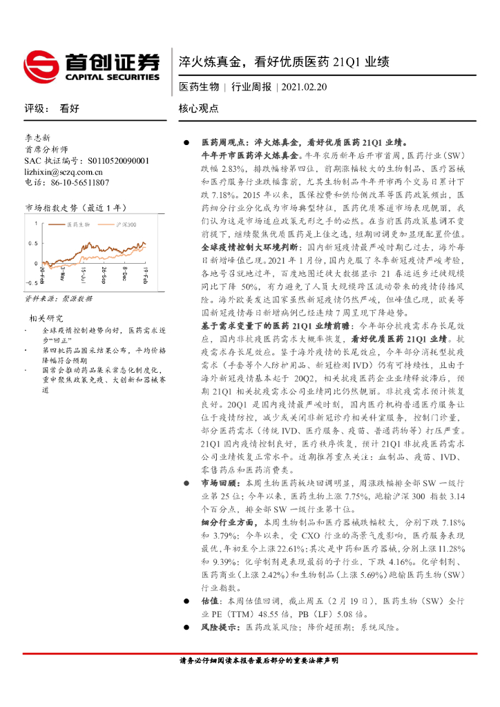 首创证券:医药生物行业周报:淬火炼真金,看好优质医药21Q1业绩.pdf