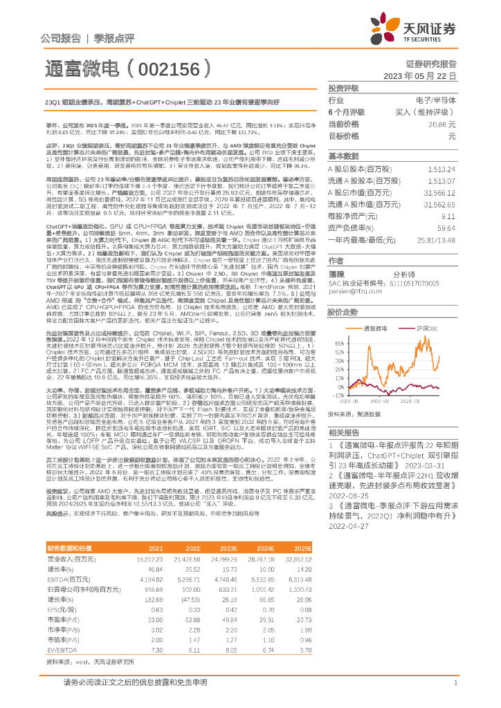 天风证券:通富微电(002156)-23Q1短期业绩承压,周期复苏+ChatGPT+Chiplet三轮驱动23年业绩有望逐季向好.pdf
