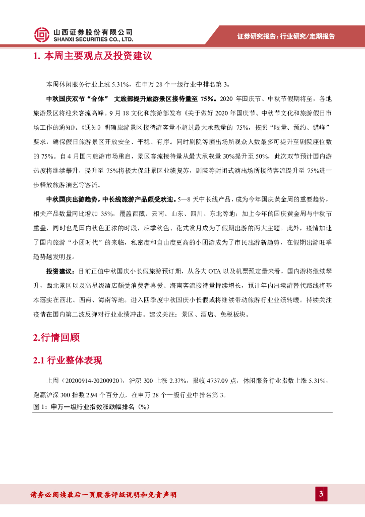 山西证券:社会服务行业周报:中秋国庆双节“合体” 文旅部提升旅游景区接待量至75%.pdf