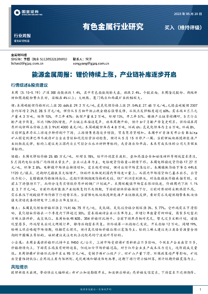 国金证券:能源金属周报:锂价持续上涨,产业链补库逐步开启.pdf