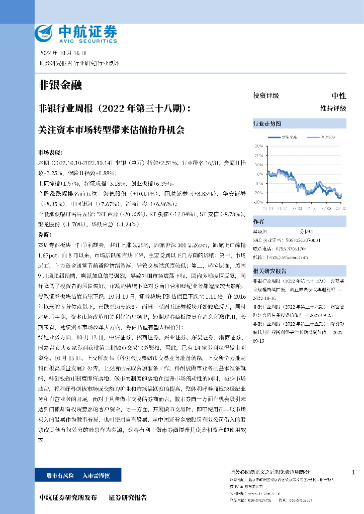 中航证券:非银行业周报(2022年第三十八期):关注资本市场转型带来估值抬升机会.pdf