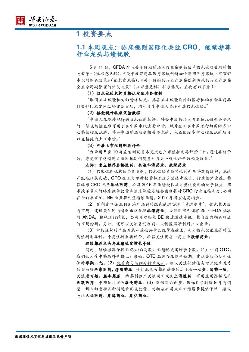 华安证券:医药生物行业周报:临床规则国际化,关注CRO,继续关注绩优股.pdf