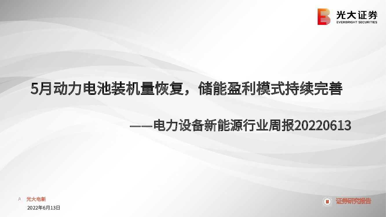 光大证券:电力设备新能源行业周报:5月动力电池装机量恢复,储能盈利模式持续完善.pdf