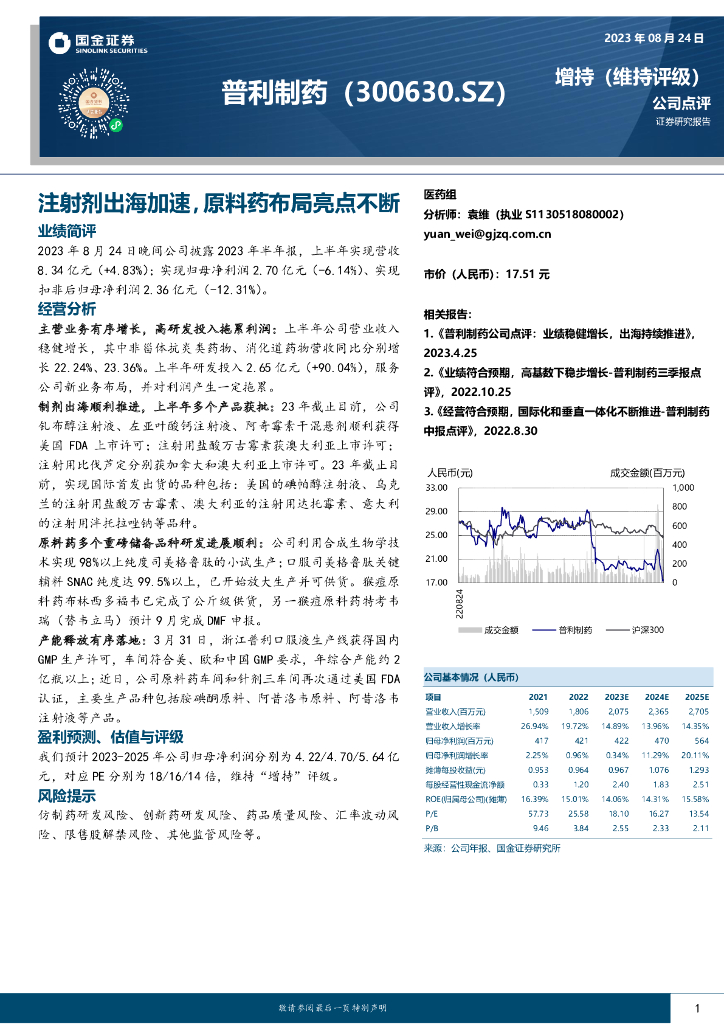国金证券:普利制药(300630)-注射剂出海加速,原料药布局亮点不断.pdf