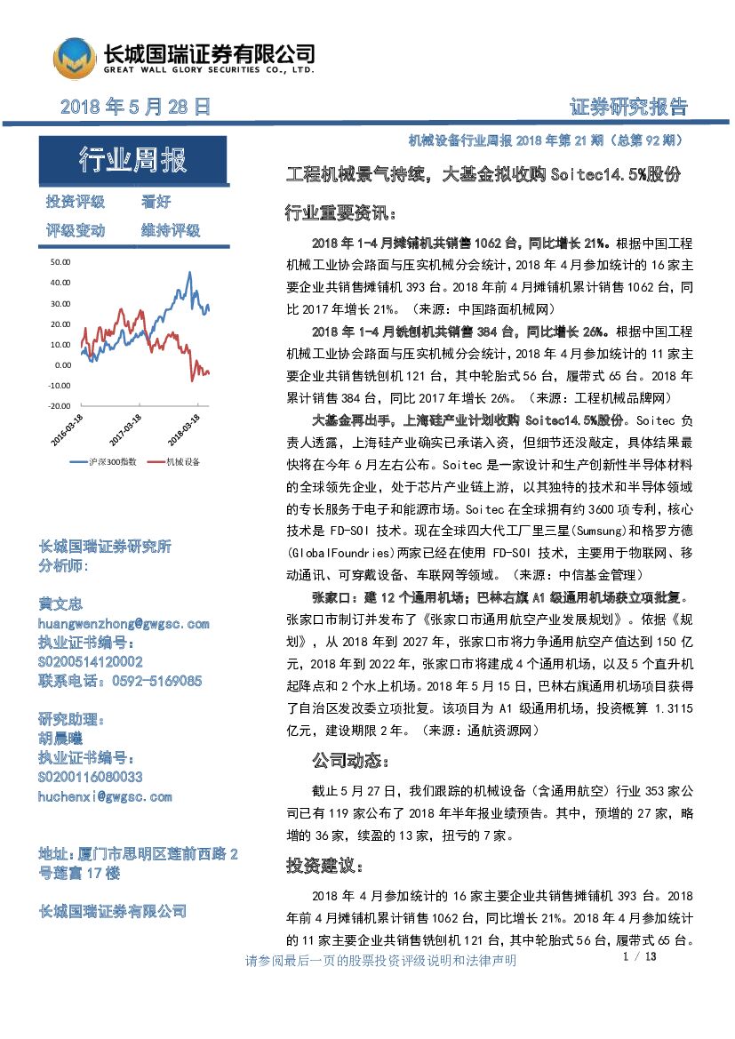 长城国瑞证券:机械设备行业周报:工程机械景气持续,大基金拟收购Soitec14.5%股份.pdf