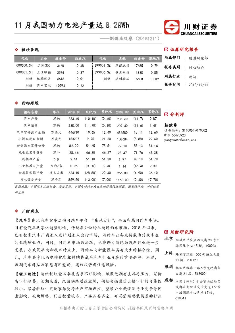 川财证券:制造业观察:11月我国动力电池产量达8.2GWh.pdf