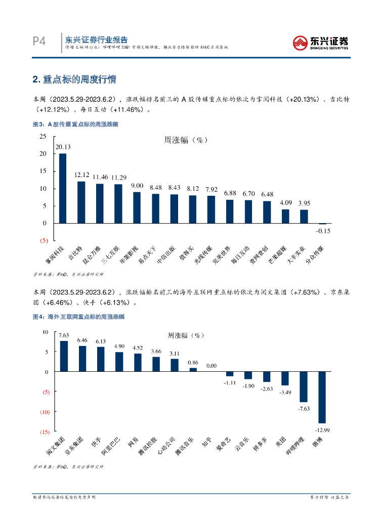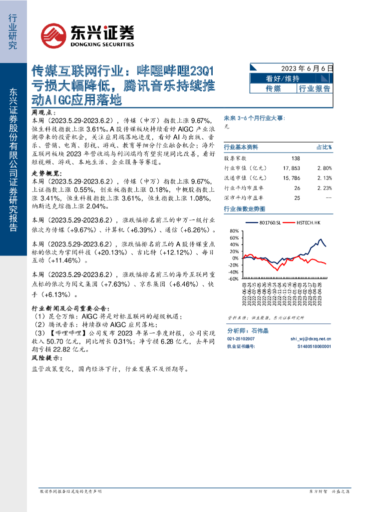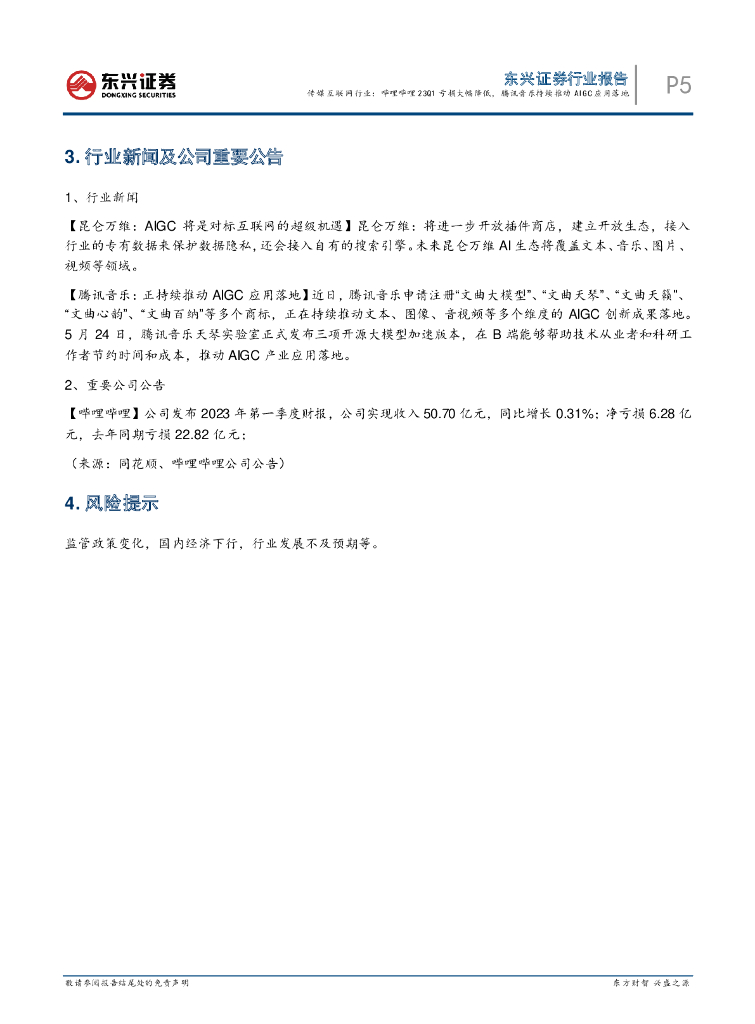 东兴证券:传媒互联网行业:哔哩哔哩23Q1亏损大幅降低,腾讯音乐持续推动AIGC应用落地.pdf