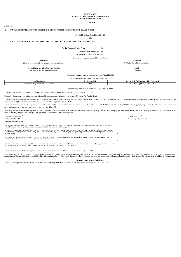 Hometrust Bancshares Inc(HTBI)2023财年年度报告(英文版).pdf