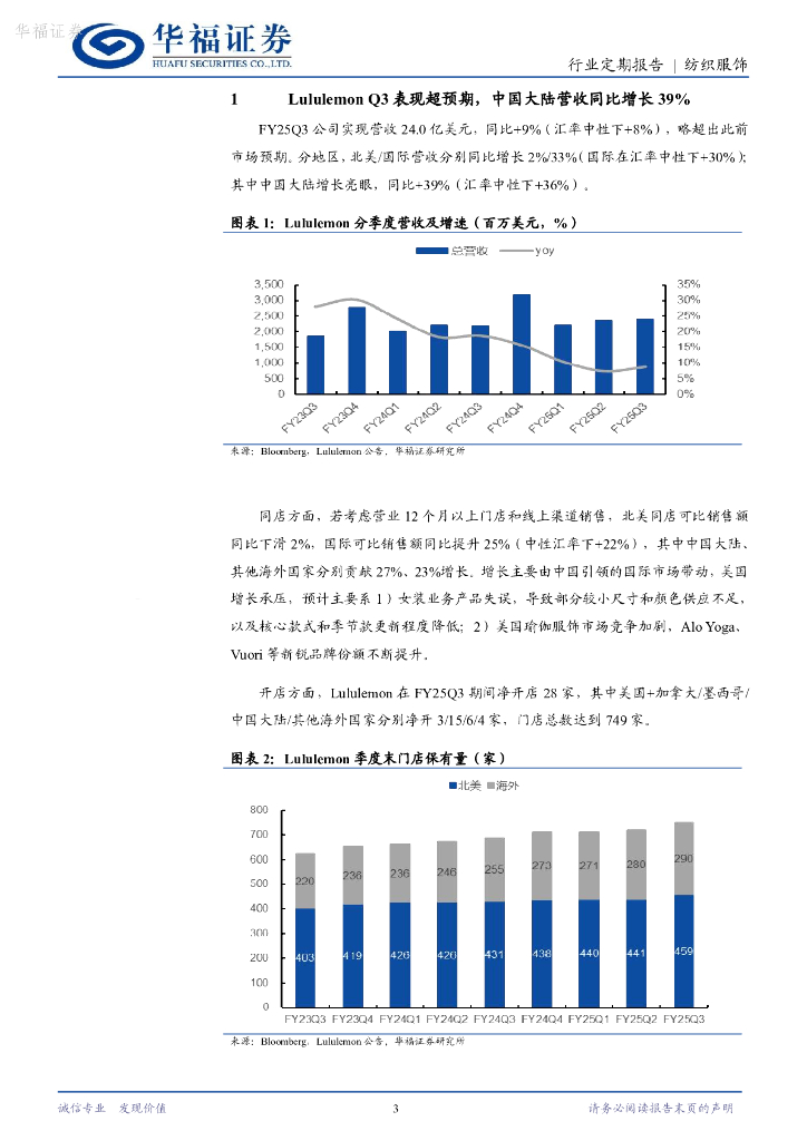 华福证券:纺织服饰行业24W49周观点:LululemonQ3表现超预期,中国大陆营收同比增长39%.pdf