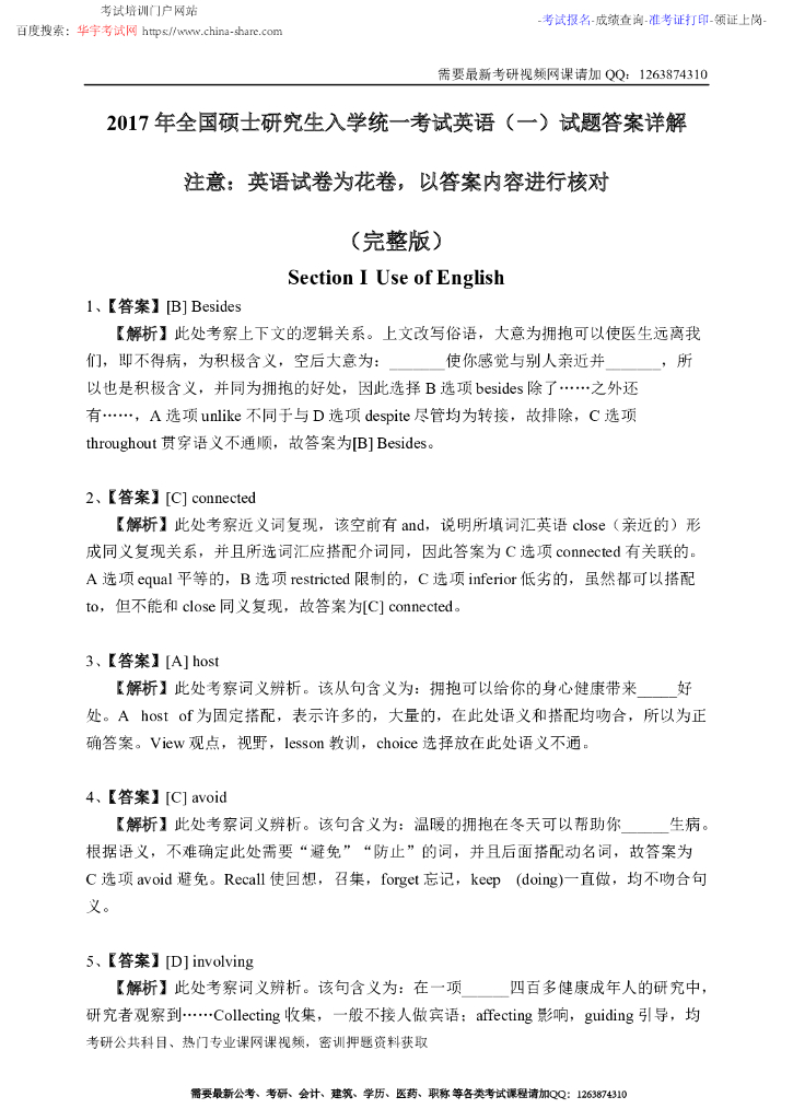 2017年全国硕士研究生入学统一考试英语(一)试题答案详解.pdf