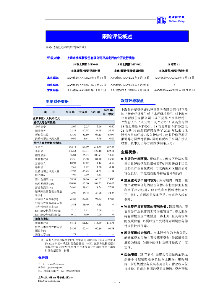 新世纪:上海市北高新股份有限公司及其发行的公开发行债券跟踪评级报告.pdf