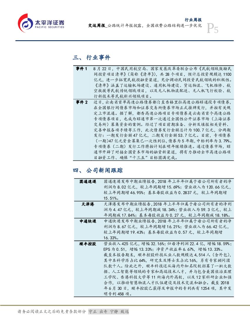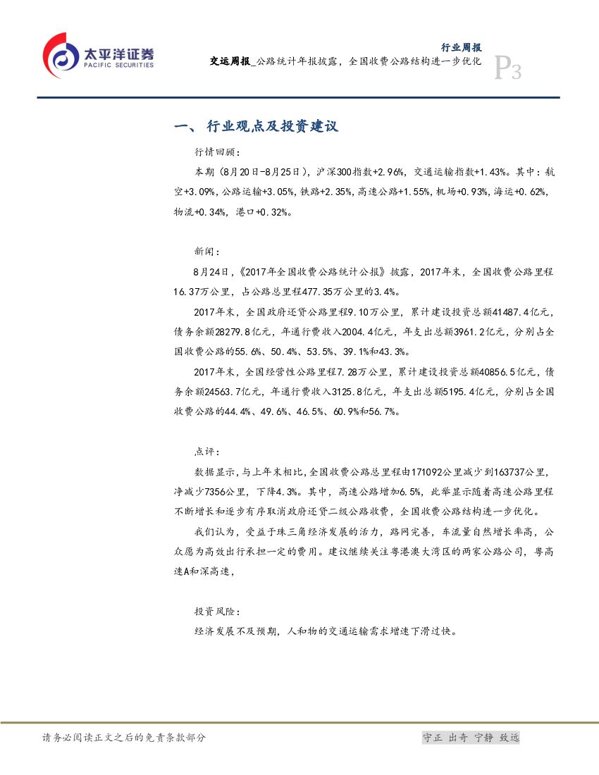 太平洋证券:交运周报:公路统计年报披露,全国收费公路结构进一步优化.pdf