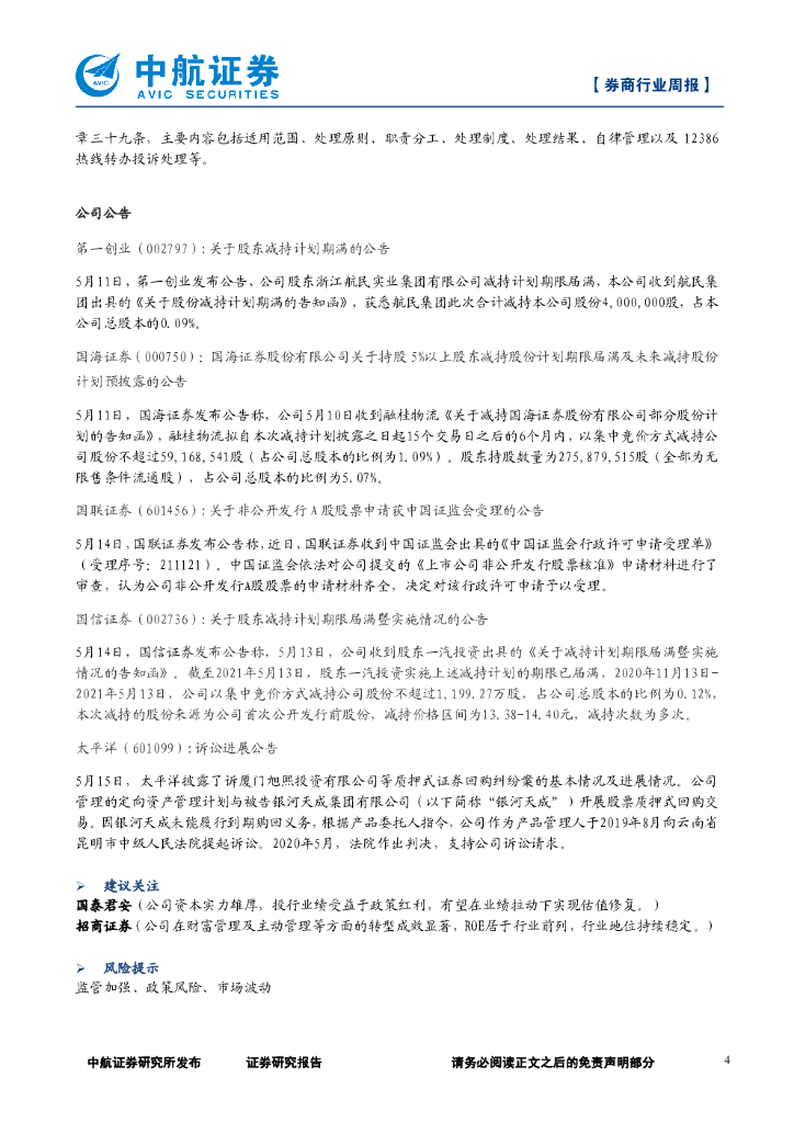 中航证券:券商行业周报(2021年第十七期):精选层再融资新规发布,券商估值仍有修复空间.pdf