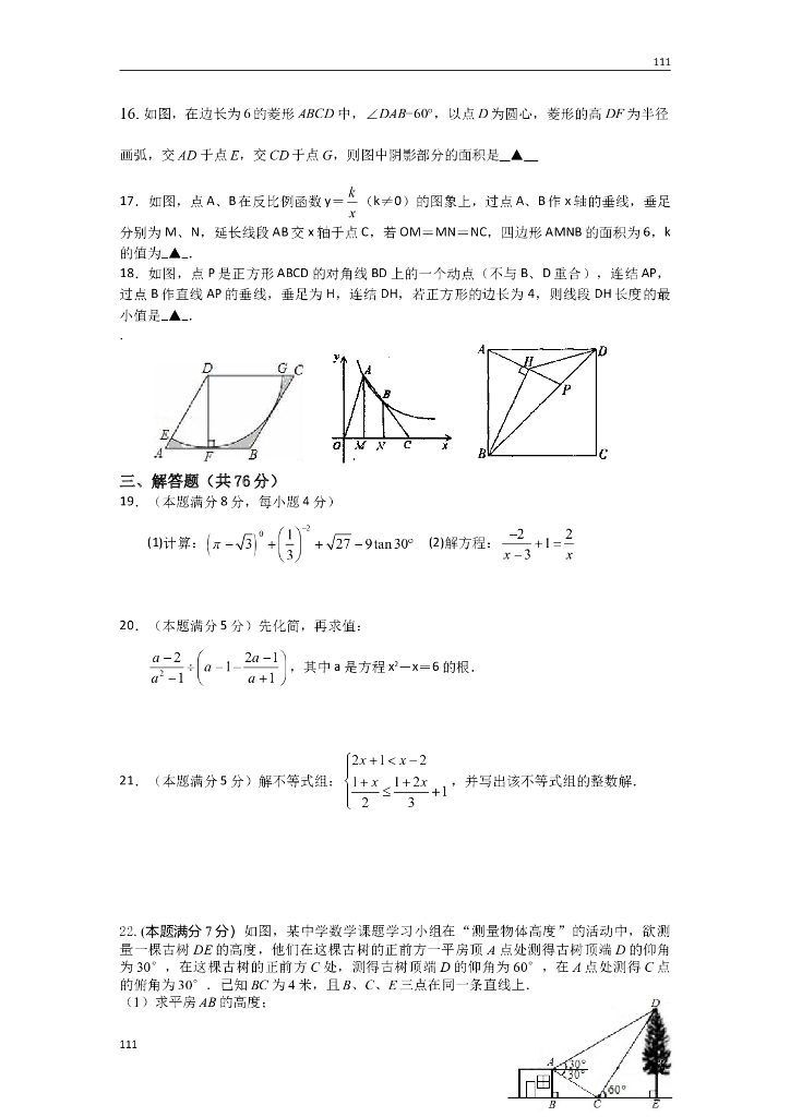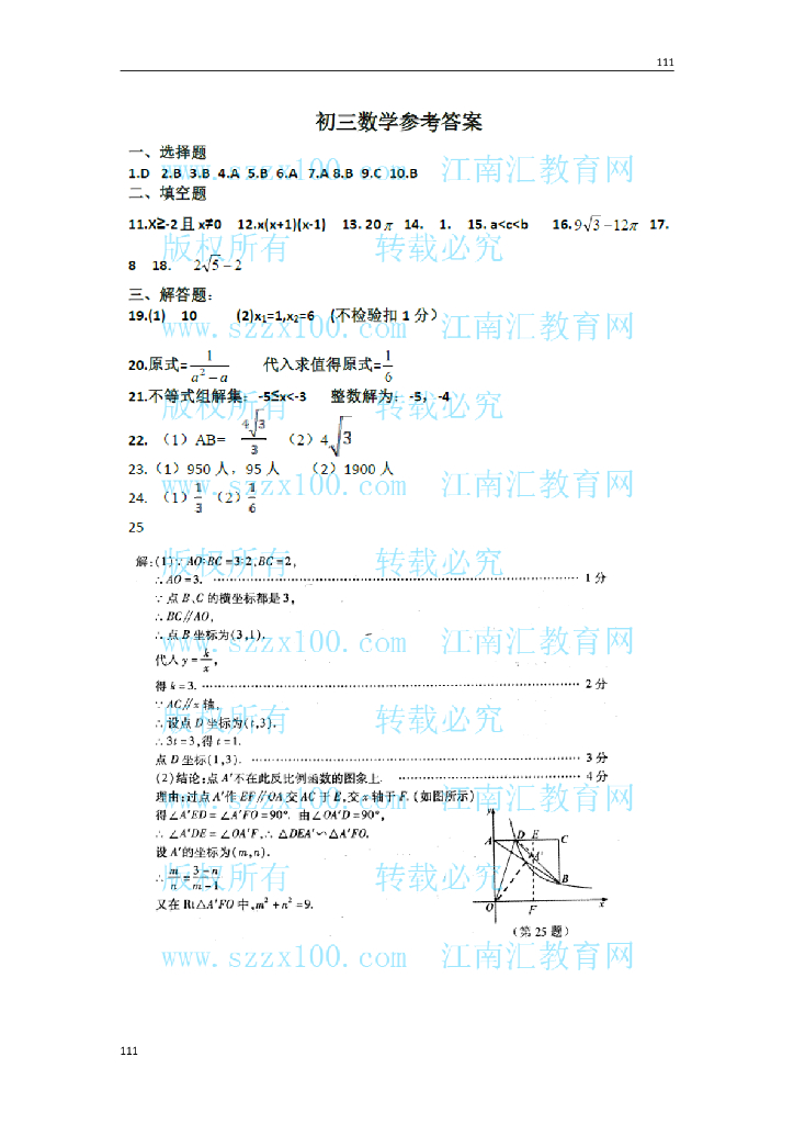 昆山三校2019-2020学年第二学期初三数学联合调研试卷(含答案)附答案.doc