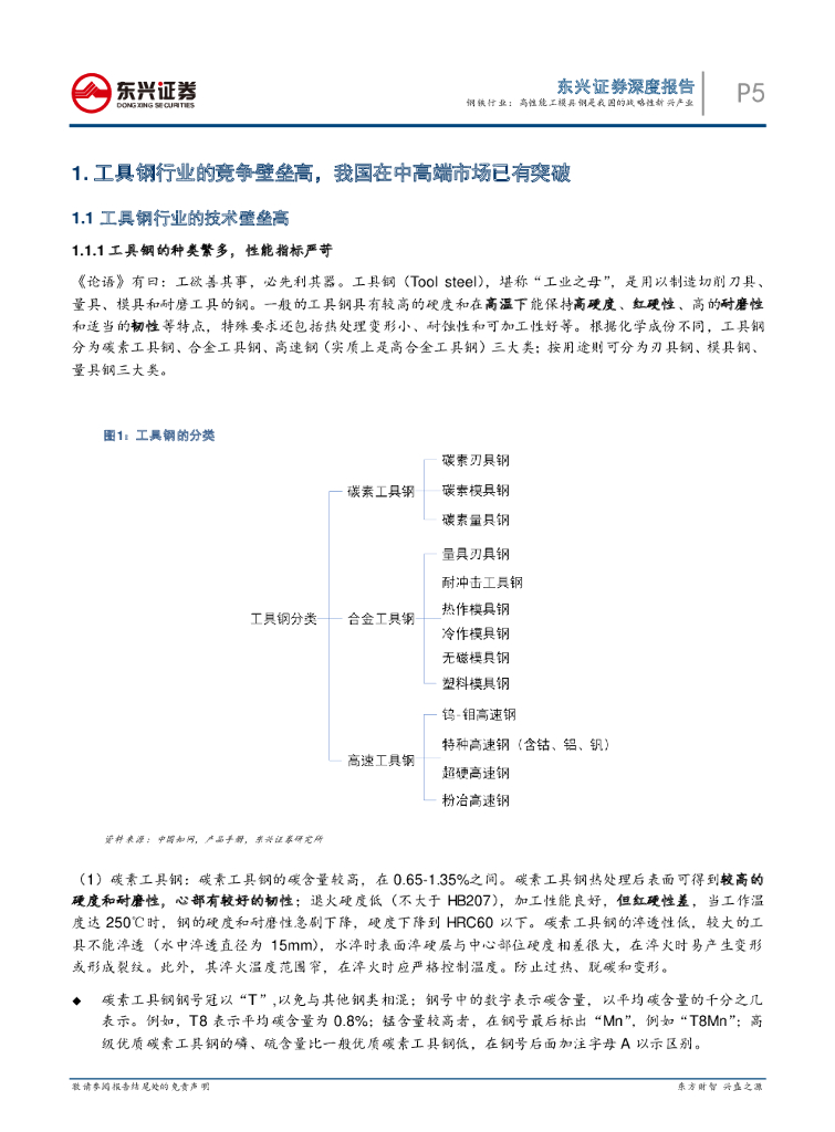 东兴证券:钢铁工业转型升级专题系列之二:钢铁行业:高性能工模具钢是我国的战略性新兴产业.pdf