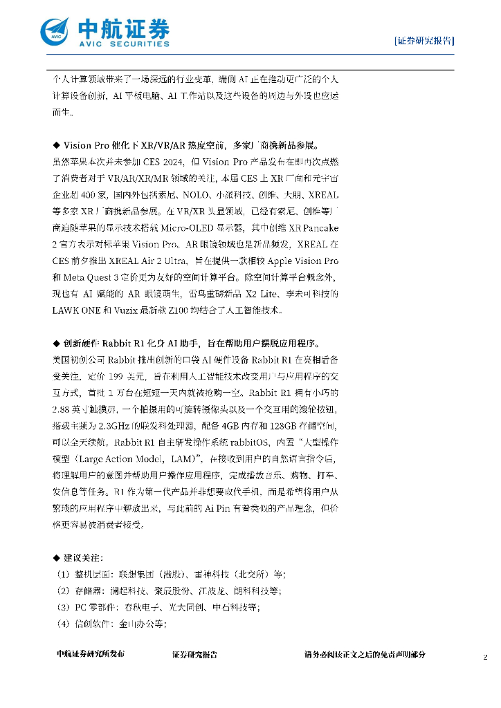中航证券:电子行业周报:消费电子盛会CES回顾,AI落地端侧拐点之年.pdf