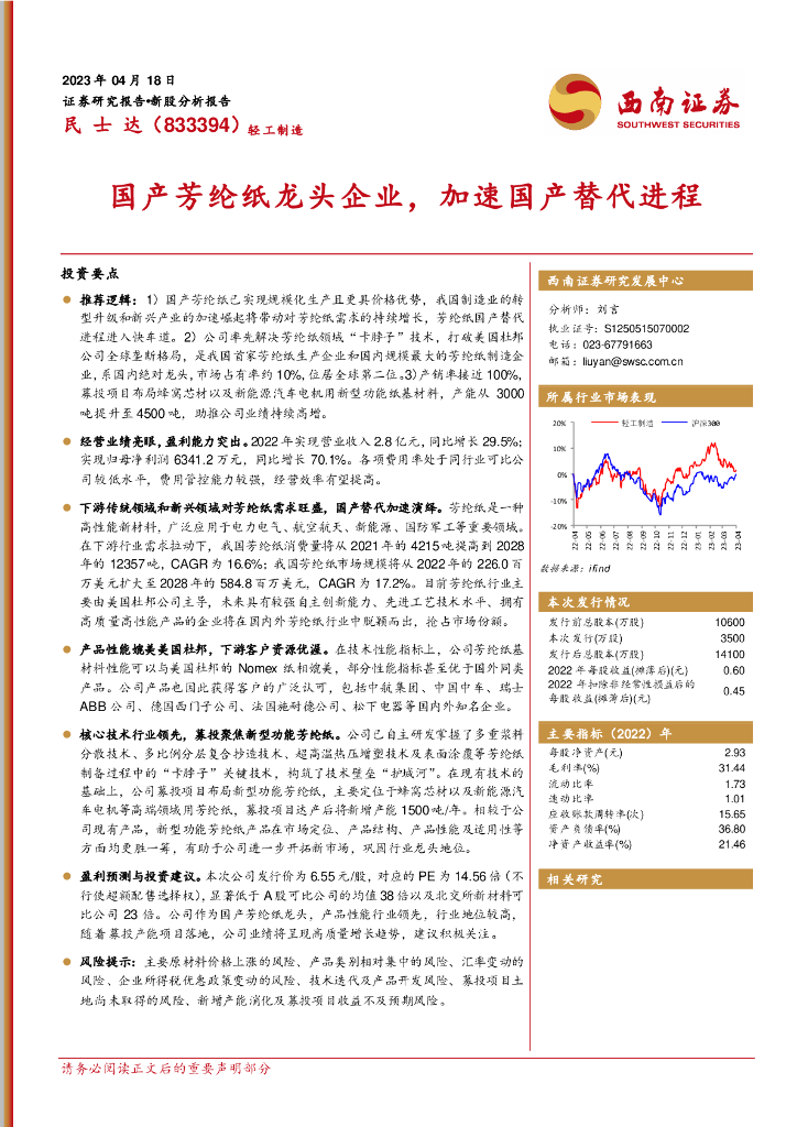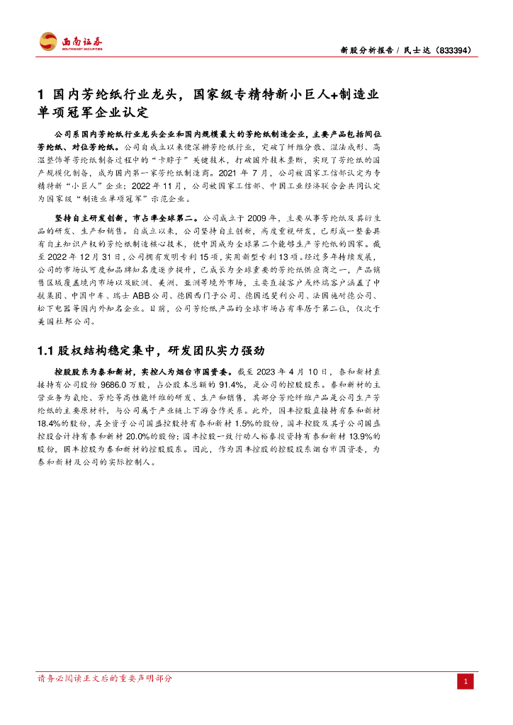 西南证券:民士达(833394)-国产芳纶纸龙头企业,加速国产替代进程.pdf