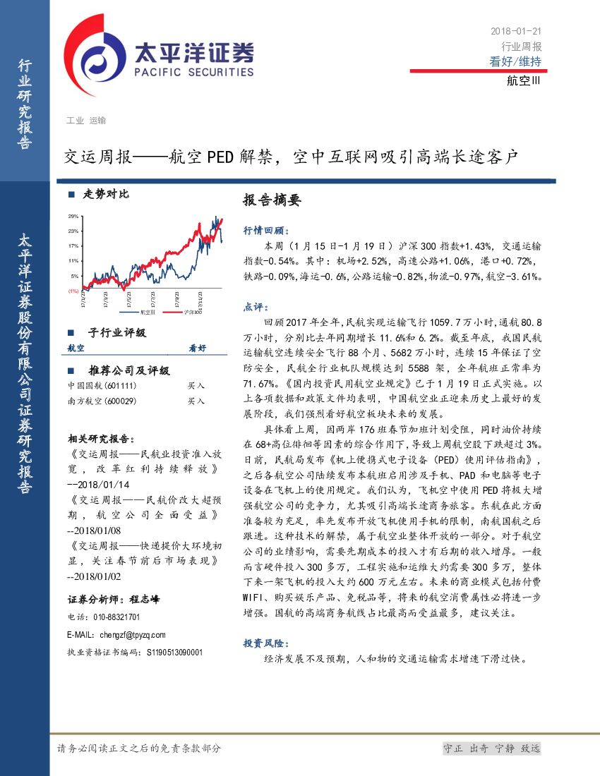 太平洋证券:交运周报:航空PED解禁,空中互联网吸引高端长途客户.pdf