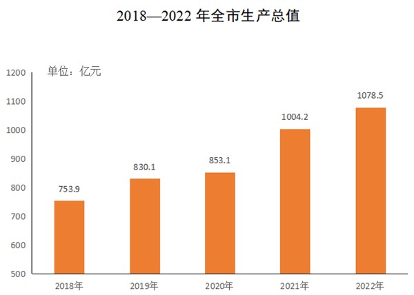 2022年,面对复杂严峻的外部环境,全市上下以习近平新时代中国特色社会主义思想为指导,深入学习贯彻党的二十大精神,坚持稳中求进工作总基调,完整、准确、全面贯彻新发展理念,主动服务和融入新发展格局,着力推动高质量发展,坚定不移推进产业强市,加快构建现代化产业体系,在多重压力下经济发展保持稳定恢复态势,生产需求总体平稳,质量效益稳步提升,民生福祉持续改善,跨越式高质量发展迈出坚实步伐。