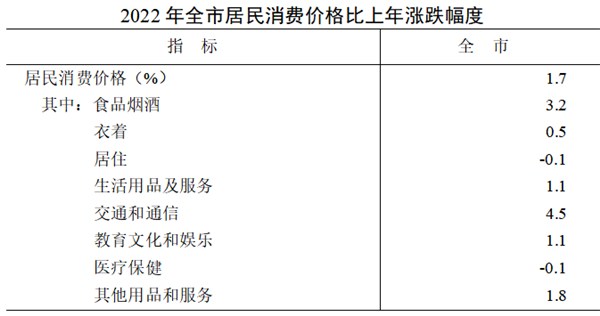 全年居民消费价格比上年上涨1.7%。分类别看,食品烟酒、