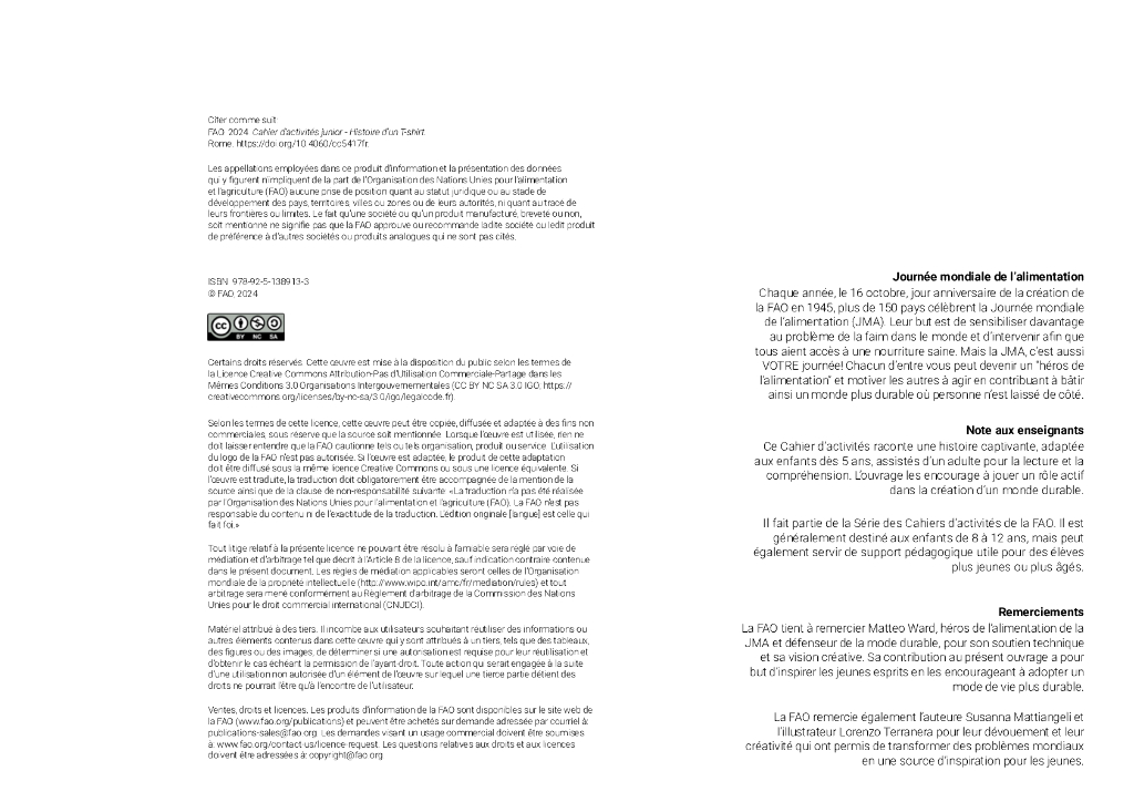 联合国粮农组织:2024年T恤的故事-儿童活动手册(法语版).pdf