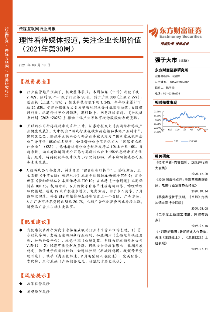 东方财富证券:传媒互联网行业周报:理性看待媒体报道,关注企业长期价值(2021年第30周).pdf