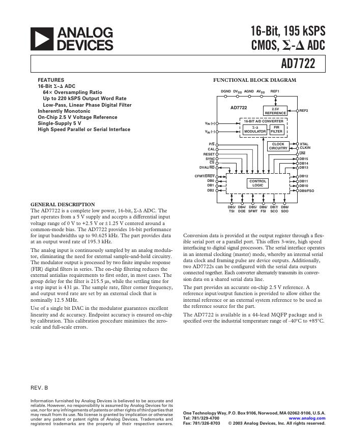 ANALOG DEVICES AD7722 英文产品数据手册.pdf