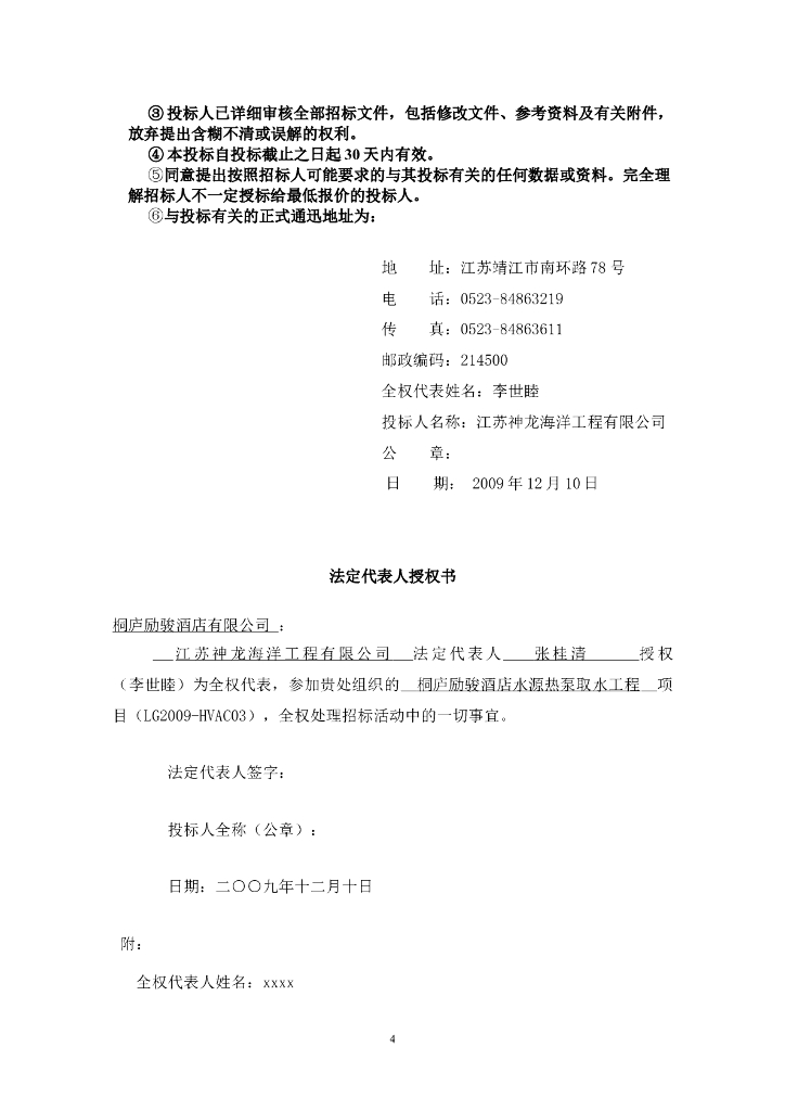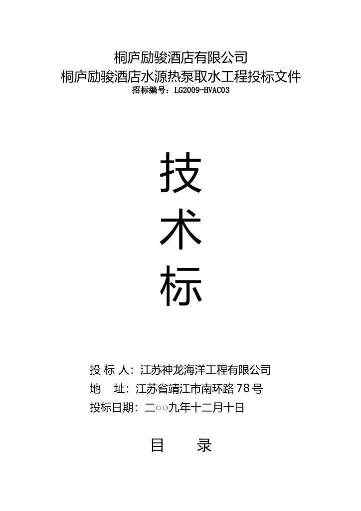 桐庐励骏酒店水源热泵取水工程投标文件.doc