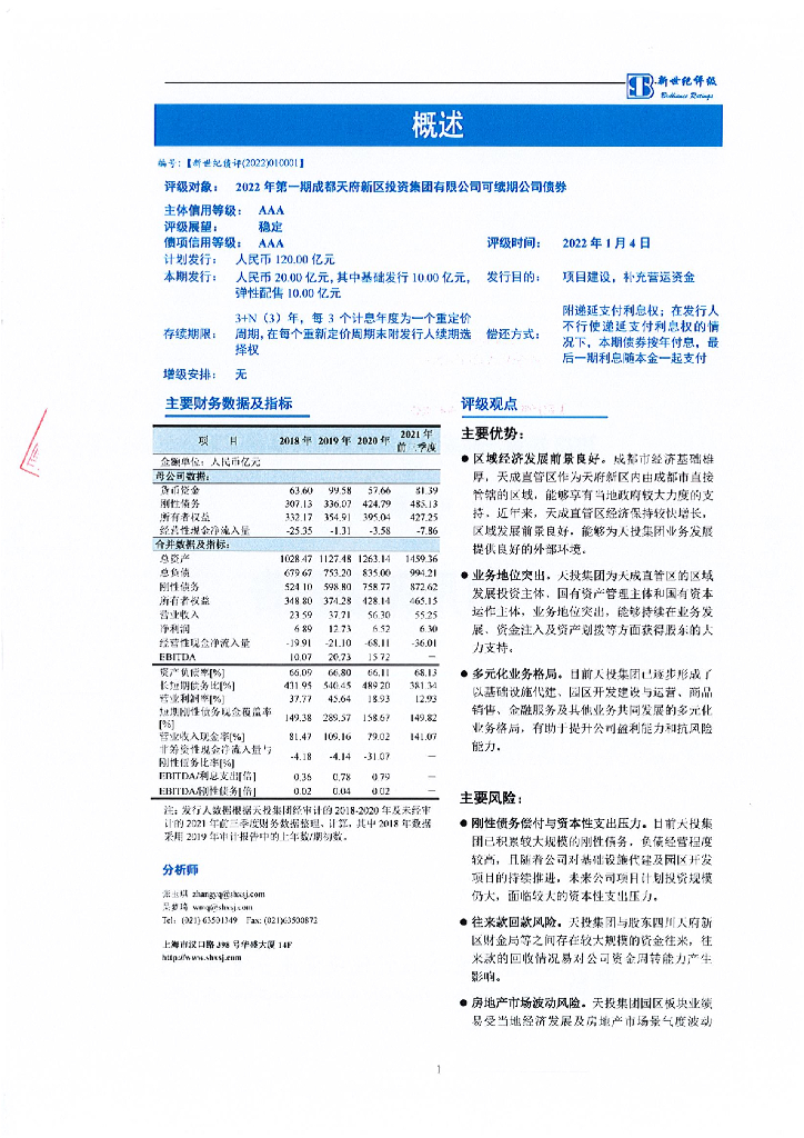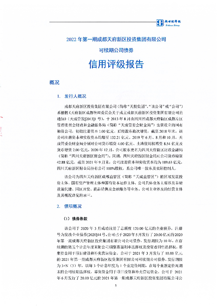 新世纪:2022年第一期成都天府新区投资集团有限公司可续期公司债券信用评级报告.pdf