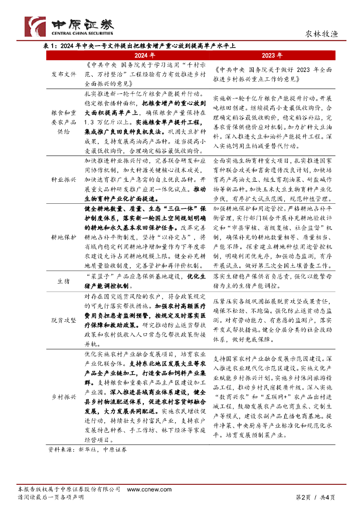 中原证券:农林牧渔:2024年中央一号文件点评报告-提升粮食单产水平,推动生物育种产业化扩面提速.pdf