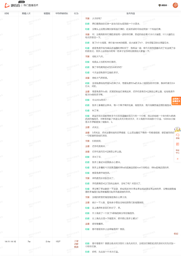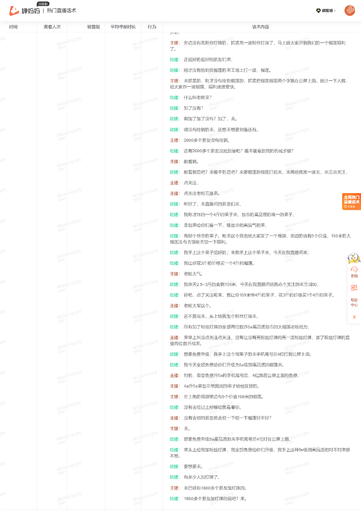 蝉妈妈:生鲜蔬果行业小熊哥榴莲抖音直播间话术.pdf