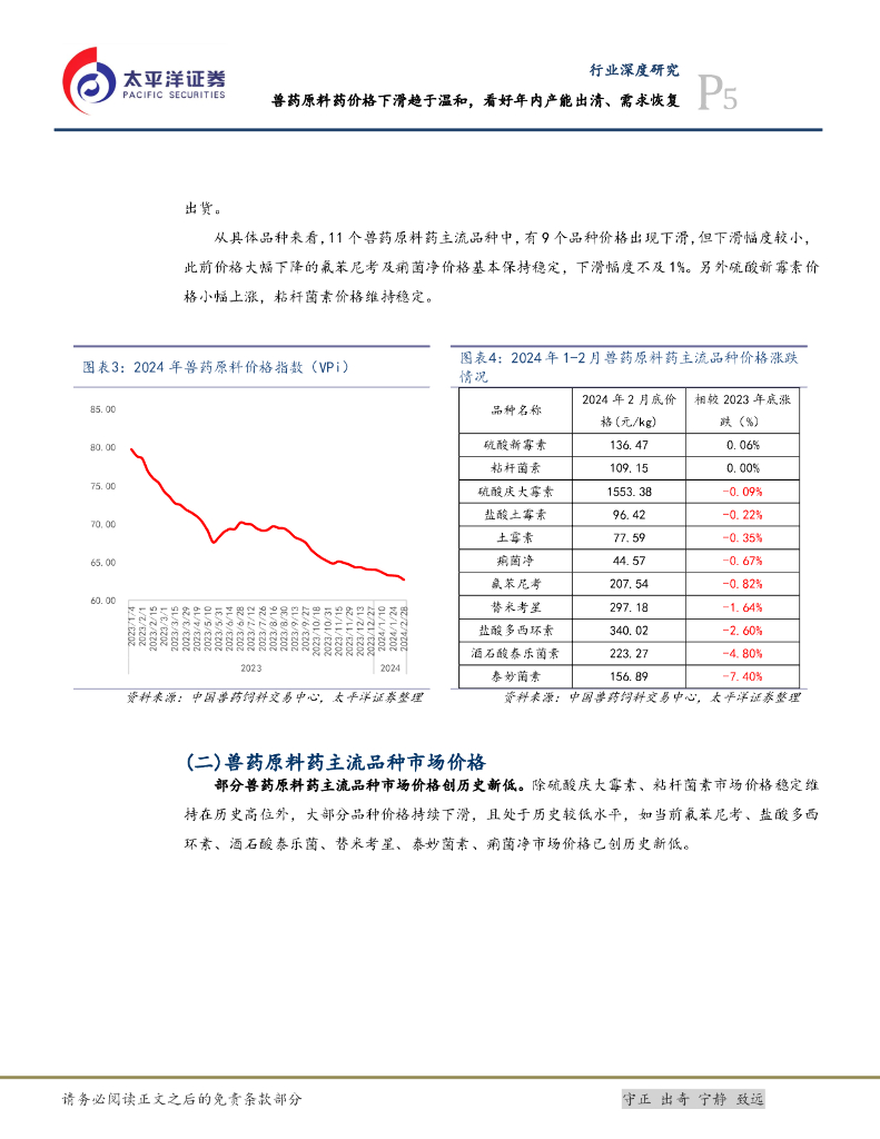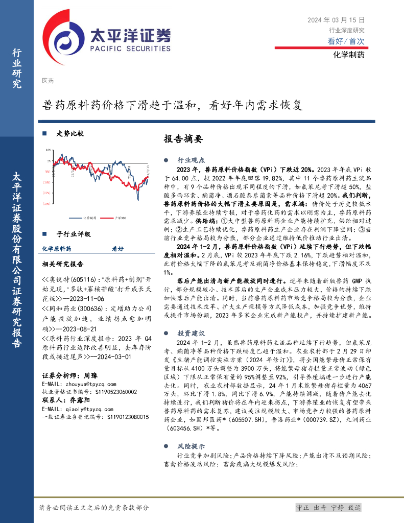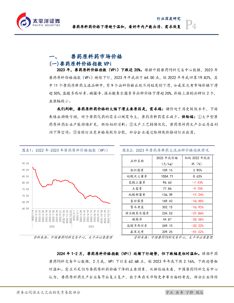 太平洋证券:化学制药行业深度研究:兽药原料药价格下滑趋于温和,看好年内需求恢复.pdf