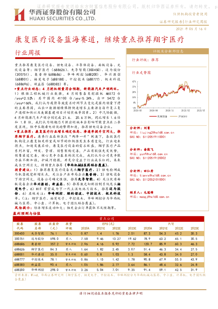 华西证券:机械行业周报:康复医疗设备蓝海赛道,继续重点推荐翔宇医疗.pdf