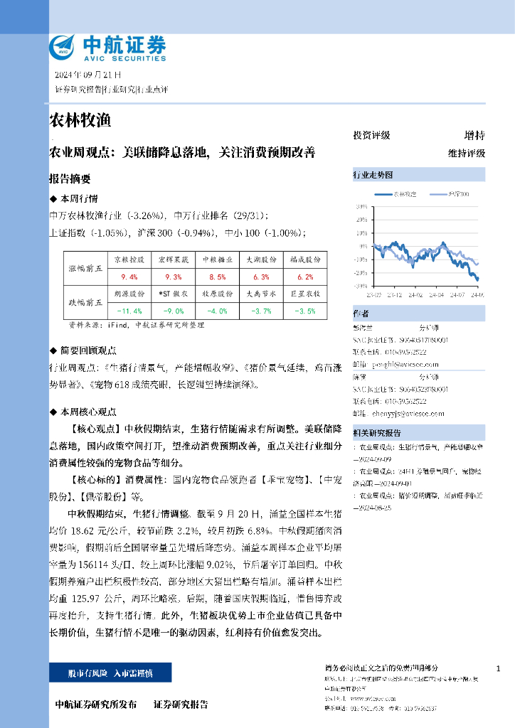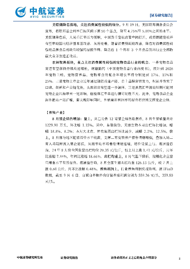 中航证券:农业周观点:美联储降息落地,关注消费预期改善.pdf