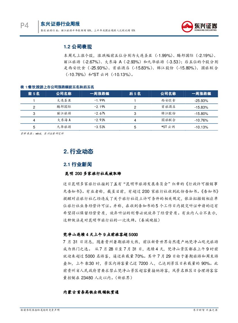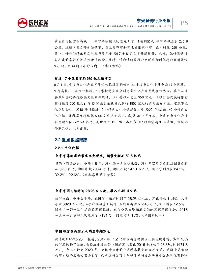 东兴证券:餐饮旅游行业2018年8月第1周周报:丽江旅游半年报预增18%,上半年我国出境游人次同比增15%.pdf